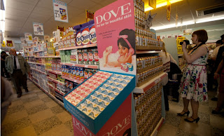 Harvey Nichols- The visual dynamics of the store window function effectively as it gives a visual interpretation of the word of the product they are advertising thereby making it more likely to stay in the public conciousness making them want to know more. The black and tonal colours appeal to a masculine market adding to the dynamics created by the textures within the design format of broken and destroyed objects. Based on the angle you look from, there is a 3-Dimentional element to the window design which makes the effects seem as though the 'Bang' is coming towards you which is inclusive of the audience.